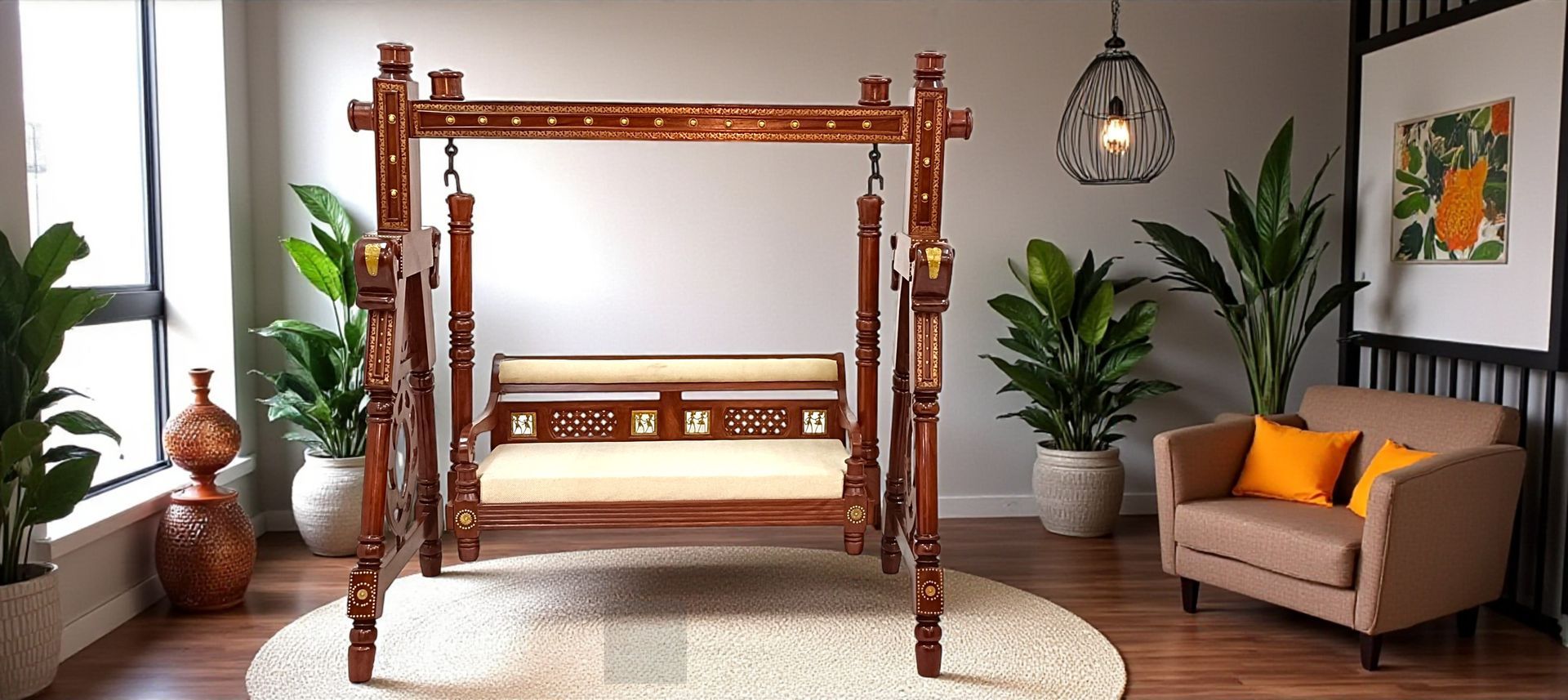 Designed to complement both traditional and modern interiors, this swing is ideal for living rooms, balconies, verandas, patios, and covered outdoor spaces, adding timeless elegance and comfort to any setting.